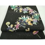 平和屋着物●全通柄 京袋帯 WAKKA ワッカ 盆踊り 兎 鼠 犬 猫 狐 黒地 正絹 逸品 DABD1163ps