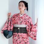 着物 単衣 レディース 洗える着物 単品 ニコアンティーク ドッグ・エキスポ ロゼ 着物 ひとえ レトロ ファブリック着物 ピンク 犬 カジュアル 女性 日本製