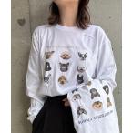 tシャツ 犬いっぱい半袖タイトTシャツ レディース