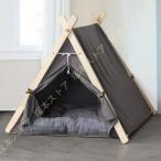 ペットベッド ベッドハウス クッション付き ドッグ キャット ティピーテント 室内用 小型犬 猫 犬小屋 木 ドットハウス 北欧 シンプル かわいい 通年利用