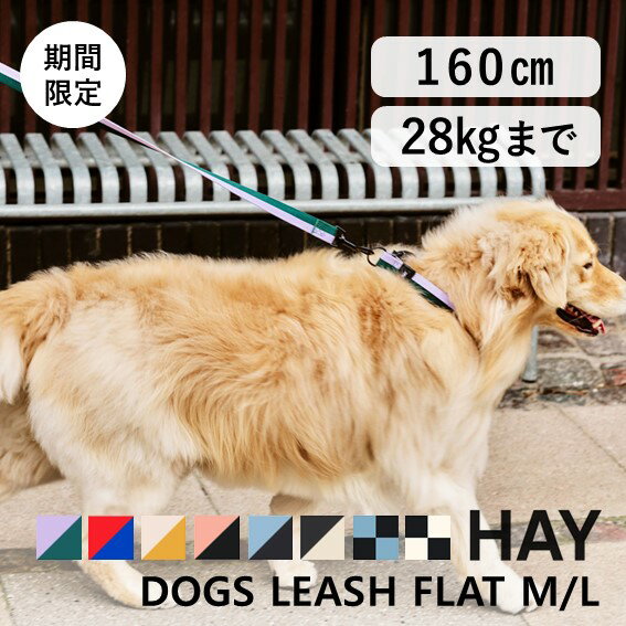 【HAY POP-UP期間限定】 正規品 HAY DOGS LEASH FLAT M/L PINK&BLACK ヘイ ドッグス リーシュ フラット 160cm ホワイト オークル ブルー ラベンダー レッド ブルー ストライプ チェック ピンク ブラック 犬用リード ペット用リード 犬用アクセサリー ドッグアクセサリー