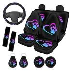 HELLHERO カーシートカバー フルセット 犬 猫 足跡プリント シートカバー 車用 アクセサリー フロントリアシートカバー ステアリングホイールカバー 輸入品