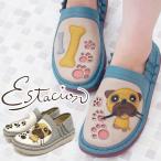 エスタシオン Estacion レディース スリッポン 犬モチーフ コンフォートシューズ ローカット パグ ワンちゃん ワンコ イヌ 本革 TG158ブルー/ベージュ 痛くない