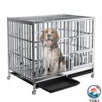犬小屋 犬用ケージ 大型犬 ステンレス ケージ 屋根付き 頑丈 ゲージ 折りたたみ キャスター トレー マット ペット 幅110×奥行72×高さ92cm petoop