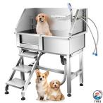 大型犬用浴槽 バスタブ 犬用入浴タブ 犬用グルーミング浴槽 ペット犬入浴ステーション ステンレス製 頑丈 耐久性 広いスペース 伸縮式はしご付き スライドドア