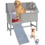 犬の洗浄ステーション ペットの洗浄ステーション ステンレススチール ペットバスタブ 大型 洗い桶 ステンレス流し台 シンクセット(50cm/19.7in deep)