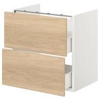 【IKEA/イケア/通販】ENHET エーンヘート ベースキャビネット 洗面台用 引き出し2個付き, ホワイト/オーク調,…[DD](89411531)