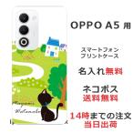 OPPO A5 5G オッポ A5 5G らふら 名入れ スマホケース 黒猫 お散歩