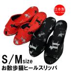 スリッパ ヒール レディース 日本製 おしゃれ ヒールスリッパ お散歩猫 4cmヒール オフィス 通年用 ルームサンダル かわいい 小さいサイズ Sサイズあり ネコ 猫