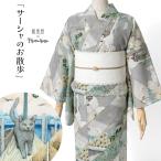 浴衣 サーシャのお散歩 猫 グレー ベージュ セオアルファ メルヘン 単衣 夏着物 洗える着物 仕立て上がり 個性的 レディース 和風館 フルッタロッサ Fruttarossa