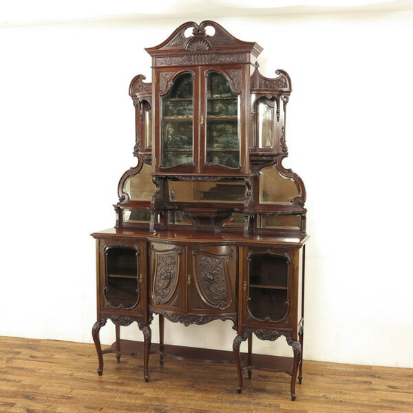 アンティーク 家具 パーラーキャビネット アンティーク家具 イギリス ビクトリアン アンティークキャビネット 流麗で華やかなデザイン 飾り棚 素晴らしい彫刻 猫脚 収納兼ディスプレイ棚 インテリア イギリスアンティーク家具 56285
