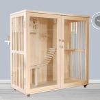 【翌日出荷】猫 ケージ キャットケージ 無垢材 ケージ 猫ケージ 木製 留守番 保護 多頭飼い 自在車輪付き 猫 ハウス ねこケージ ネコケージ コンパクト 大型 広い ステップ 上下運動 お手入れ簡単 組立簡単 室内飼い 脱走防止