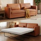 【並行輸入品】Mjkone フェイクレザー プルアウトソファベッド、クイーンサイズ コンバーチブルスリーパーソファ 猫傷防止レザー付き、2イン1