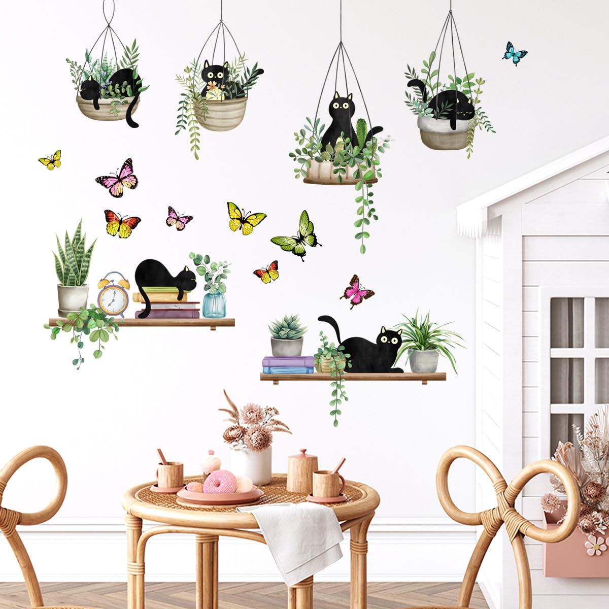 【送料無料】ZARROUEAウォールステッカー猫と木 つる植物 つりラン 緑の部屋の壁のシールリビングルームの壁のシール diy ウォールステッカー 北欧 蝶 花 緑 観葉植物 モダンアート ポスター ウォールペーパーオシャレな部屋インテリア 装飾 (G-04) 色:G-04