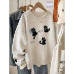 トレーナー キッズ 子供服 猫柄トップス 刺? カジュアル 丸首 男の子 秋服 春秋 ゆったり 可愛い ジュニア 長袖 薄手 子供服 KUGA087(110-170)