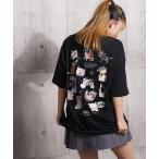 tシャツ Cat & Dog Print T-Shirt/アニマル 猫&犬 発泡プリント オーバーサイズ 長袖Tシャツ ロンT レディース メンズ