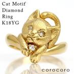 猫リングK18YGレディースダイヤモンドリング指輪イエローゴールド