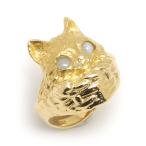 猫モチーフリング 約8号弱 K18YG・クリソベリルキャッツアイ ネコ アニマル 動物