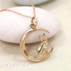 三日月にしゃんと佇む猫のシルエット レディース ネックレス ダイヤモンド 10金 ゴールド K10
