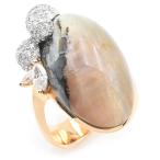 約30ct天然オパールキャッツアイリング 14号 K18YG 天然ダイヤモンド カボションカット 猫の目 イエローゴールド 地金約19g 中古 送料無料