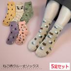 靴下 レディース 猫柄 5足セット ねこ ネコ まとめ買い 1000円ぽっきり クルーソックス