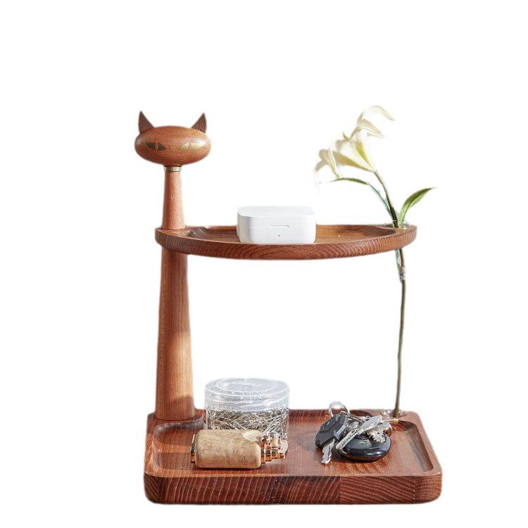 キーボックス 木製 玄関収納 小物入れ 卓上 猫 花瓶フック付き 鍵置き 炭化 白蜡木 桜 胡桃(x2)