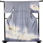 付下げ 身丈158.5cm 裄丈66.5cm M 袷 ヱ霞 琵琶 金銀彩 青灰色 正絹 秀品 中古