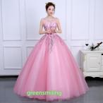 カラードレス 演奏会ドレス 10代 20代 コンクール ステージ衣装 演奏会 発表会 二次会 披露宴 プリンセスラインドレス ピアノ発表会 琵琶 ピンク 袖なし