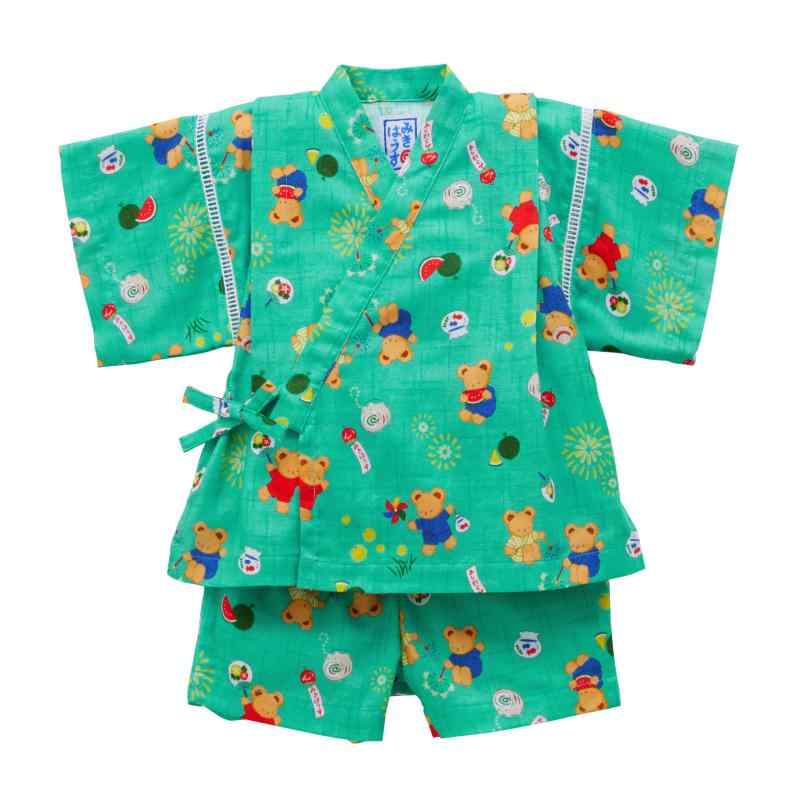 [ミキハウス] 甚平スーツ 上下セット 半袖 くま 日本製 男の子 女の子 花火大会 夏祭り ベビー キッズ 子供服 12-7503-145