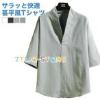 Tシャツ メンズ 綿麻風 甚平風 作務衣風 トップス カットソー シャツ 夏服 涼しい 部屋着 ルームウェア 寝巻き 半袖 5分袖 40代 50代 60代 70代 白 黒