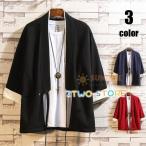 羽織 メンズ 着物 カーディガン 7分袖 トップス 無地 シャツ甚平 浴衣風 ジャケット はおり 薄手 カジュアル おしゃれ