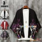 カーディガン 羽織 メンズ 着物 鶴柄 七分袖 甚平風 和風 カジュアルトップス 春夏秋 花火大会 お祭り 薄手 おしゃれ アウター 父の日