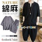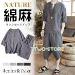 綿麻上下セット 父の日 プレゼント 七分丈サルエルパンツ メンズ 即納 甚平風 セットアップ リネン 夏 薄手 ルームウェア 部屋着