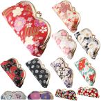 メガネケース 眼鏡ケース M型 がま口 二越ちりめん 大人 かわいい おしゃれ 女性 がまぐち ちりめん 生地 黒 桜 ピンク花柄 和柄 和雑貨 ク