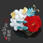 (Prices down3)髪飾り 成人式 つまみ細工コーム 髪飾り「赤色の薔薇 小花と蝶」つまみのお花髪飾り 成人式の袴にも 結婚式 ブライダル(TF15-05ss2512wkk40