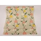 名古屋帯 生地 反物 染帯 染め帯 ちりめん 縮緬生地 絹100% 日本製品 九寸名古屋帯 帯地 未仕立て品 色 ベージュグレー系色地 柄 アラベスク 花