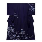 訪問着 正絹 新品 訳あり 藍染 浜ちりめん生地使用 熨斗 飛び鶴 扇面 未仕立て 仮絵羽 袷 着物