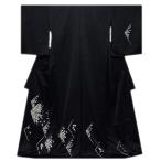 「贅沢な総刺繍」 黒色 柄全てが細やかな刺繍 七宝 菊梅笹 高級ちりめん生地使用 正絹 付下げ 訪問着