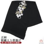 刺繍帯揚げ 正絹 刺繍 帯揚げ ちりめん生地 oa-075 黒 ブラック 振袖 訪問着 成人式 卒業式