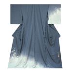 訪問着 正絹 新品 たたき染め 花柄 ぼかし 丹後ちりめん生地使用 錆御納戸色 青色 未仕立て 仮絵羽 礼装 袷 着物