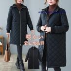 キルティングコート 中綿コート レディース ロング丈 中綿ジャケット ジップアップ ブルゾン 裏ボア 羽織 秋冬 アウター 防寒 体型カバー 無地