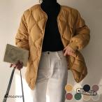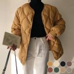 キルティングジャケット レディース 秋 冬 アウター 長袖 オーバーサイズ ノーカラー ミディアム丈 お洒落