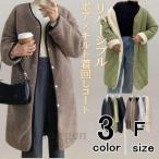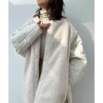 キルティングコート ボアコート ミドル丈 レディース リバーシブルコート 抜き襟 ノーカラー ジャケット キルトコート あたたかいパイピングボア 防寒 あった