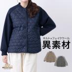 異素材MIX キルティング ジャケット アウター レディース コート シンプル 厚手 裏地あり 中綿入り キルト生地 首元 すっきり 白 春 秋 冬
