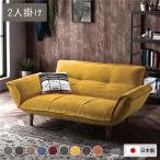 リクライニングソファ 2人掛 コーデュロイ生地 イエロー 脚部 ナチュラル 日本製 ローソファ
