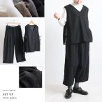 Yahoo限定 年度末 大感謝SALE 春コーデュロイ生地 上下 セット アップ 横リボン付きベスト 幅広ストレート パンツ86cm黒K67
