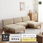 ユニットソファ レイアウト自由 3人掛け 2人掛け カウチ 組み合わせ可能 天然木フレーム ポケットコイル 快適座り心地 広々座面 コーデュロイ生地 Resho