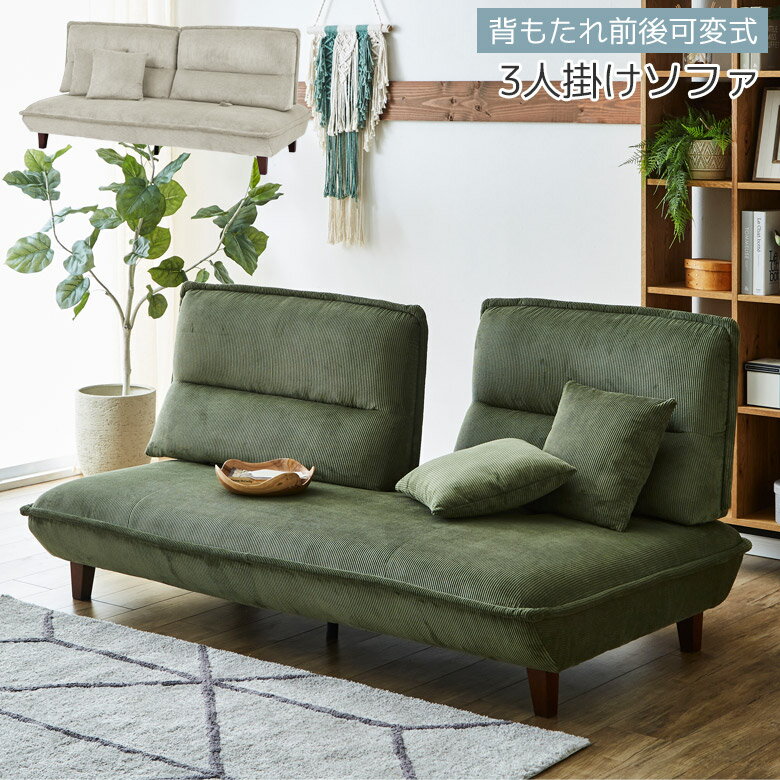 【全商品に使える12%offクーポンあり!!】 ソファ ソファー 幅188cm 背もたれ可動 三人掛け 3人掛け おしゃれ シンプル モダン 背もたれ前後可動 ファブリック コーデュロイ Sバネ ウレタンフォーム ウェービングベルト 北欧 グリーン グレー アイボリー