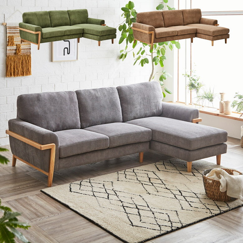 【全商品に使える11%offクーポンあり!!】 カウチソファー 3人掛けソファー おしゃれ ソファ 3人掛け 肘付き カウチソファ 北欧 3人掛けソファ 肘あり カウチ 3人用 カウチ ソファー l字 三人掛け 3人 三人用 コーデュロイ ファブリック 布 木脚