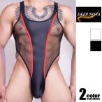 DEEP NOVA/ディープノバ サテン調生地×メッシュ ボディスーツ 透け シースルー 男性下着 Tバック